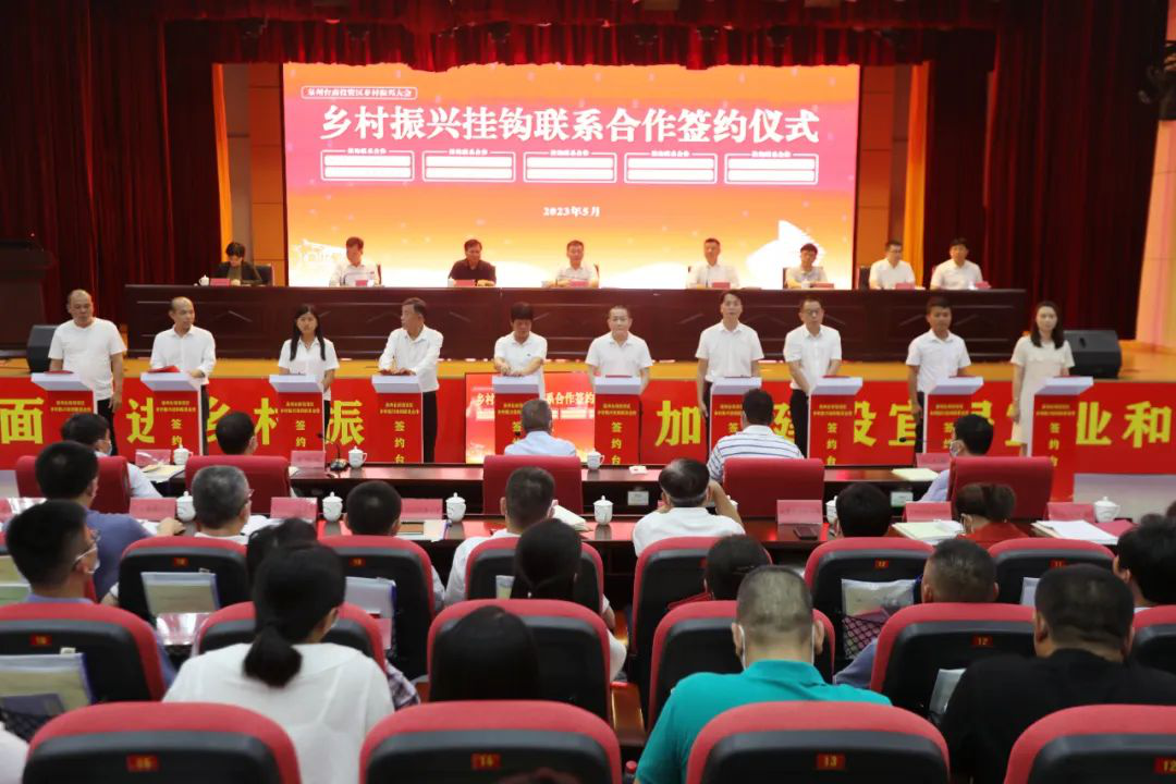 为进一步激活市场力量参与乡村旅游和特色产业发展,此次大会还举办区国企、工商联和商会挂钩联系乡村振兴点签约仪式,东园镇龙苍村、百崎乡下埭村、洛阳镇霞星村、洛阳镇万安村、张坂镇浮山村分别与厦门惠安商会、区开发集团、玉沙湾集团、招商集团、工商联签订挂钩联系协议,引导多方资源共同参与到乡村振兴的有益实践。
